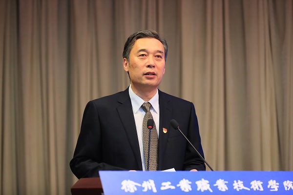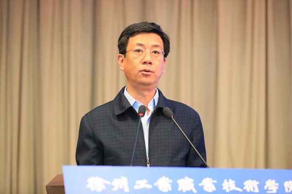 徐州市人民政府秘书长吴昊代表徐州市委、市政府对大会的召开表示热烈祝贺,对学校长期以来服务徐州地方经济社会发展做出积极努力和突出贡献的给予了充分肯定。他希望学校抢抓徐州中心城市建设和职业教育发展契机,主动围绕地方主导产业发展、传统产业升级以及人才市场需求变化,加快建设区域开放共享的技能型人才实践教学中心、创新创业人才培养基地和技术研发服务中心,早日建成全国一流的高职院校,为“强富美高”新徐州建设做出新的更大贡献。